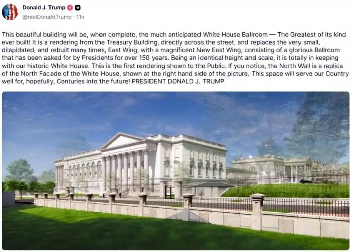 特朗普发了一张白宫宴会厅