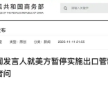 11月11日,商务部新闻发言人就美方暂停实施出口管制穿透性规则答记者问。 有记者问